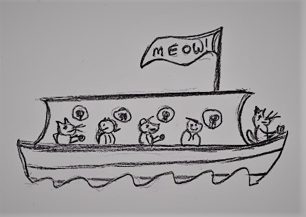 Mateys, if’n you be payin’ attention to they other stories, you know who it gots to be. Yar, that be right. They clowder of cats, which numbered five in all, whiskered their way forward.